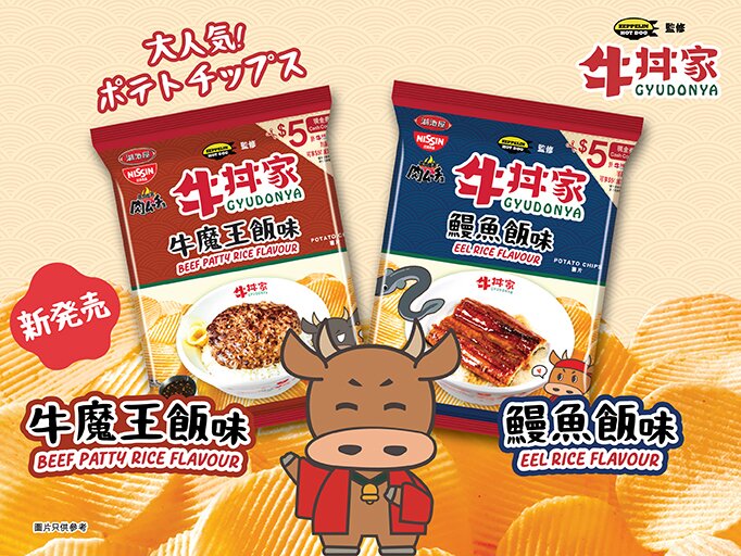 繼與香港人熱愛熱狗專門店齊柏林合作後,日清湖池屋再次與齊柏林同集團旗下香港本土誕生的日式丼飯專門店 牛丼家 合作,將兩款人氣丼飯——「牛魔王飯」與「鰻魚飯」——融入日清湖池屋的「激肉魔薯薯片」系列,打造兩款充滿日式風情的限定口味。是次聯乘以零食形式重新演繹日式丼飯風味,讓消費者隨時隨地感受濃郁的日式美食魅力。